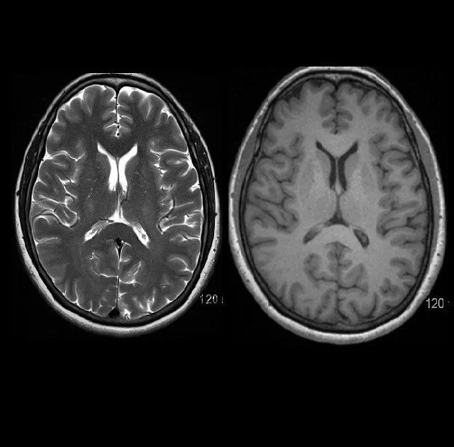 Les images en IRM structurelle sont générées grâce aux propriétés magnétiques qui varient selon les tissus biologiques du cerveau lorsque l’aimant de l’IRM est activé. Il est possible d’obtenir deux types d’images, soit avec un contraste T1 ou T2. Ces paramètres font référence à des dynamiques différentes des protons d’hydrogène des tissus du cerveau. En bref, on peut observer des images dites pondérées en T1, et pondérées en T2. Elles peuvent ressembler à une image inversée l’une de l’autre, mais des distinctions importantes peuvent être faites entre elles. C’est pourquoi on dit plutôt qu’elles sont complémentaires.